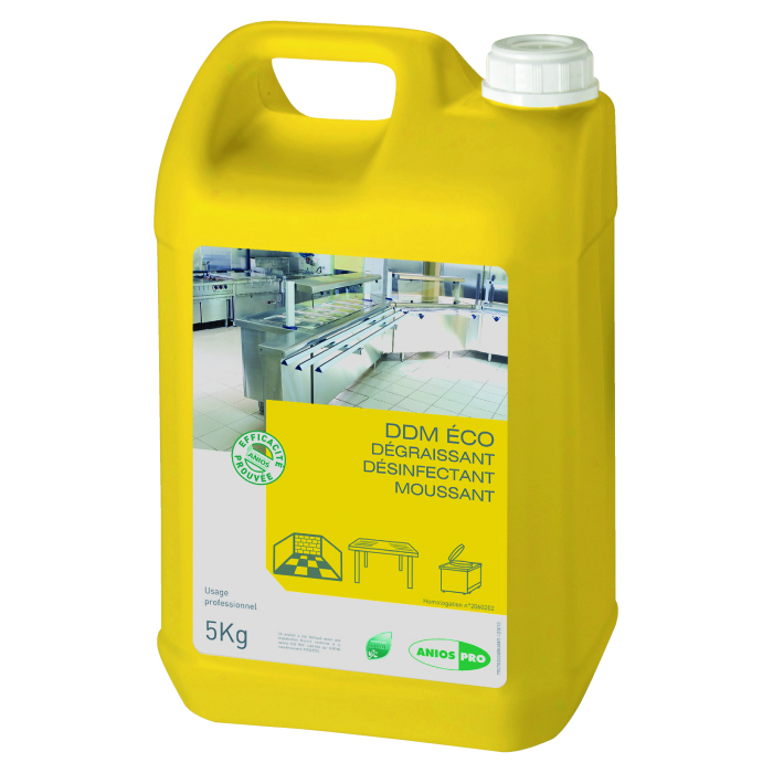 Le dégraissant, désinfectant moussant Eco (DDM) nettoie et dégraisse rapidement les surfaces traitées.