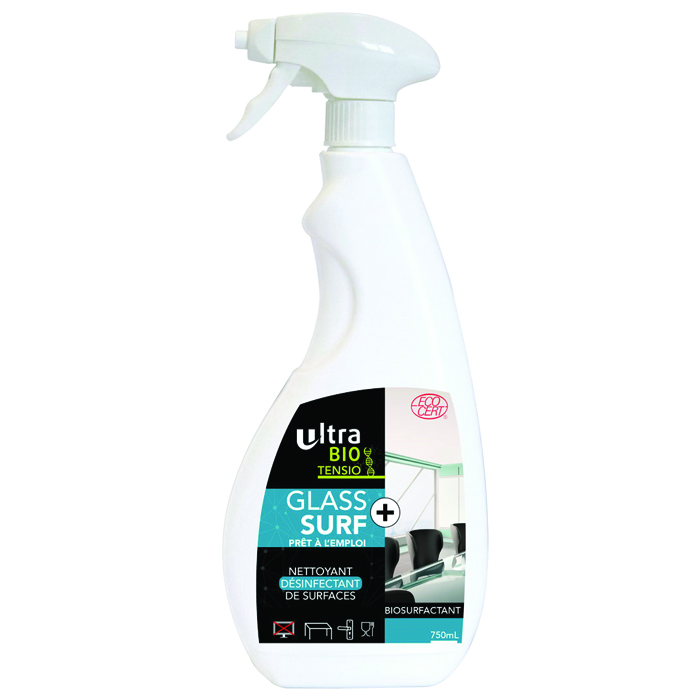 Ultrabio Tensio Glass Surf+ est un nettoyant et désinfectant surfaces, biosurfactant pour toutes les surfaces lavables.