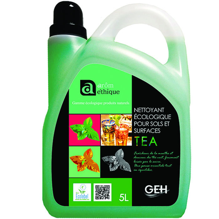 Tea de la gamme Arom Ethique est un détergent neutre écologique pour le nettoyage de tous les types de sols et surfaces lavables.